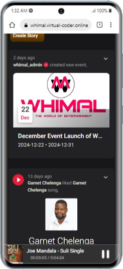 Whimal (formerly Groove Music), led by Mr. Garnet Chelenga, envisioned a platform to celebrate and promote Malawi's diverse musical heritage. The goal was to create a scalable, user-friendly music streaming service that not only catered to listeners but also empowered artists to showcase their work. VirtualCoder brought this vision to life by developing a feature-rich, intuitive platform that supports personalized user experiences, artist management tools, and seamless streaming capabilities.
